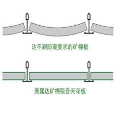 泰山采用高品質(zhì)原材料生產(chǎn),并運(yùn)用先進(jìn)的工藝對對所有產(chǎn)品進(jìn)行防潮處理。泰山天花板具有優(yōu)秀的防潮性能,在較高溫度和相對濕度的情況下也不會(huì)下陷或考扭曲。